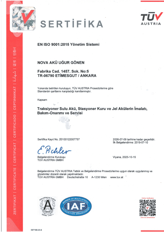 CE UYGUNLUK BELGESİ – KURU TİP AKÜLER